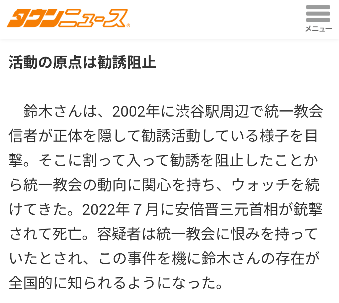 山上徹也容疑者が手紙を送った米本和広氏は鈴木エイト氏を「監禁派のパシリ」と揶揄。日本脱カルト協会理事として反カルト運動と連携、「拉致監禁」を保護説得と正当化する全国弁連を代弁。後藤氏の拉致監禁撲滅キャンペーンをひきこもり発言で妨害、5329日目の敗訴後も謝罪も削除もせず。太田光氏も「ディプログラミング」「信教の自由」の問題を鈴木氏に突きつける。ややカルト新聞で自ら“容疑者”と言うのはまるでウイグル強制収容所・臓器売買、自国民大虐殺をする国際犯罪組織 中国共産党が自ら殺人政党、その弟分の志布志事件、委員長自らリンチ殺人を犯した破壊活動防止法の日本共産党が自ら殺人政党と言っているようなものだ。反日極左用語ジャーナリストは「共産主義イデオロギーの走狗」だ。